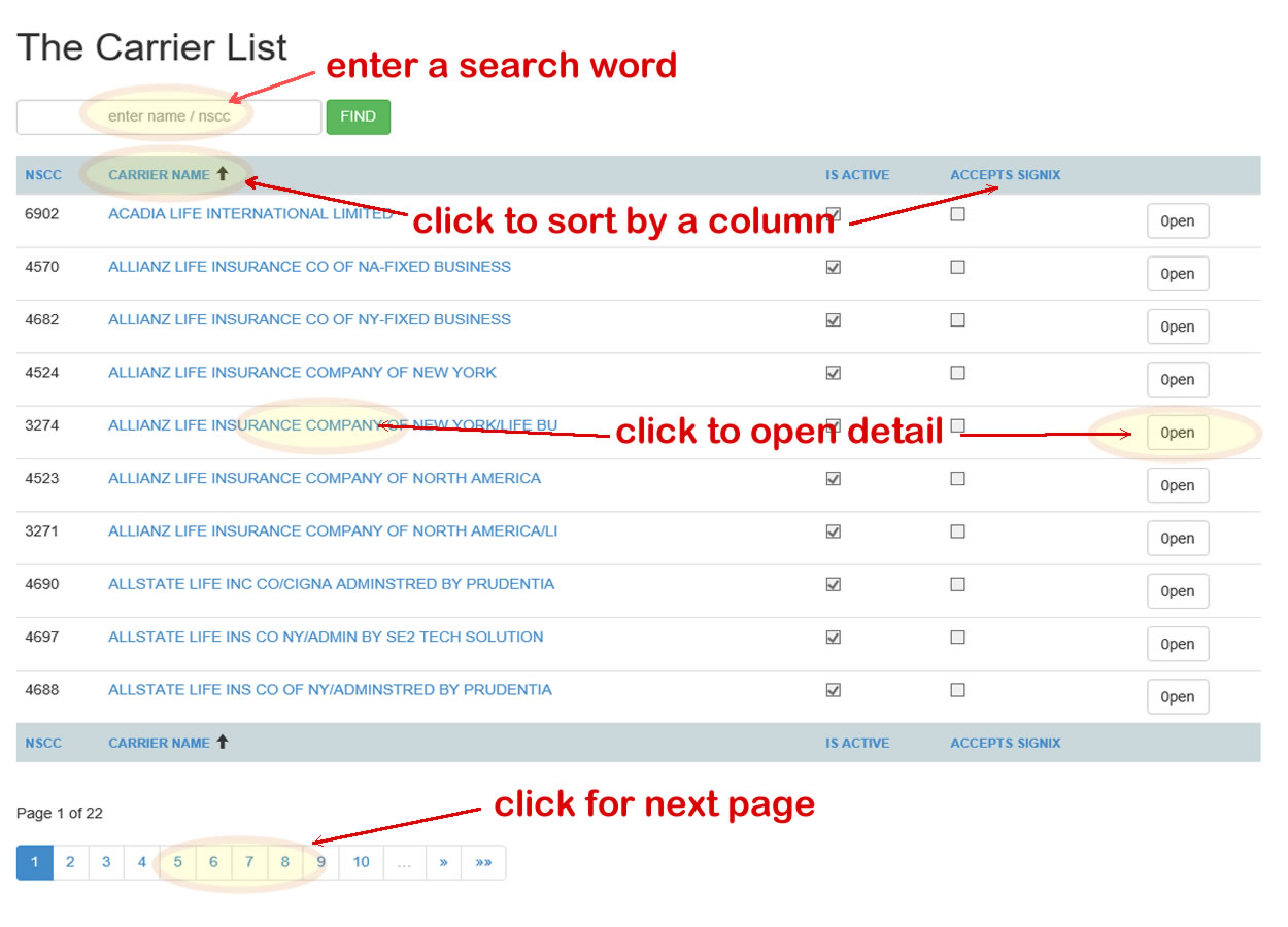 The search boxes at the top of the list allow you to filter products by name, carrier, cusip, risk , type, etc... you can enter Enter the product, type, name, or carrier your looking for into the “Find” box and click